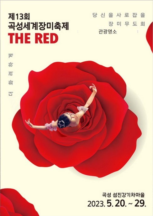 매년 5월이면 수억만 송이의 장미가 향연을 이루는 곡성세계장미축제. 매년 30만명 이상이 찾는 축제로 다양하고 아름다운 장미는 물론, 이벤트, 공연, 즐길거리가 가득한 곳입니다. 1,004종의 다양한 장미꽃을 볼 수 있는 유일한 축제로 10일간 운영하오니 축제 일정 확인 하시길 바랍니다.