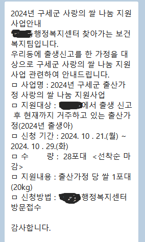 2024년 구세군 사랑의 쌀 나눔 지원 사업입니다. 해당 동에 출생신고를 한 가정을 대상으로 구세군 사랑의 쌀 나눔 지원이 가능한데요, 해당 지역마다 수량과 신청 기간이 다르다고 합니다.