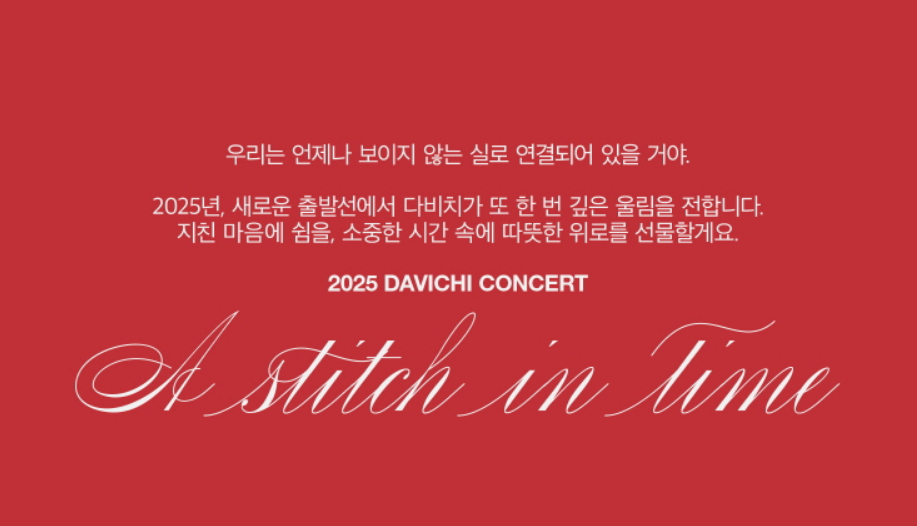 2025년도 다비치 콘서트 <A Stitch in Time>이 열릴 예정입니다. 이번 콘서트는 다비치가 팬들에게 전하고 싶은 깊은 감성을 담아 구성된 특별한 무대라고 합니다. 다비치 콘서트 티켓팅 일정, 티켓 가격, 예매 하는 방법 등에 대해 알아보도록 하겠습니다.