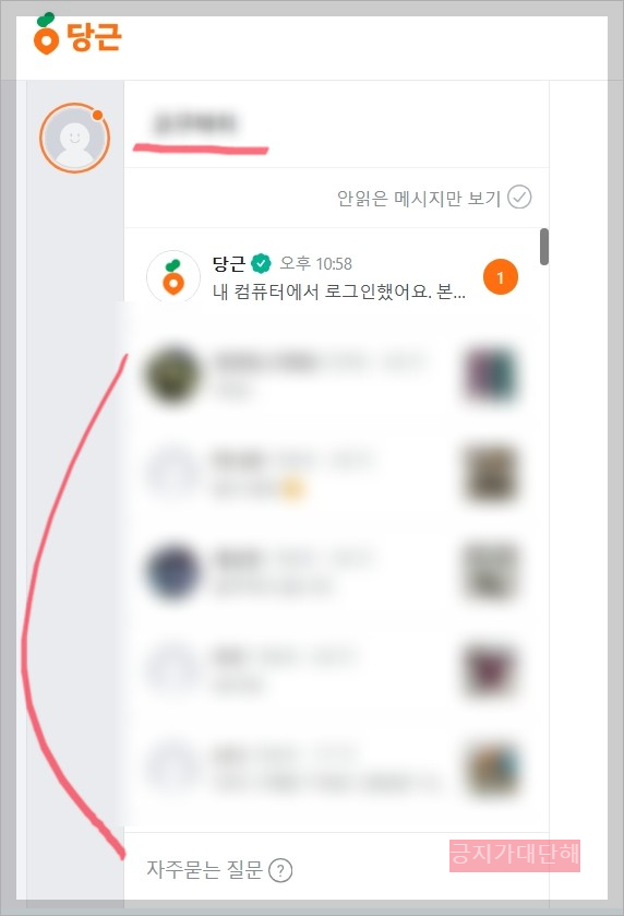 혹시나 pc버전의 당근에서도 채팅이 가능할까 싶어서 채팅하기를 눌러보았습니다.