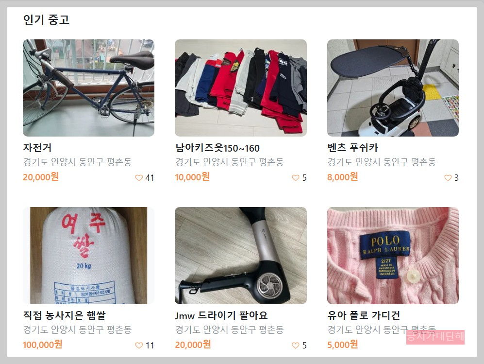 이 페이지에서 당근을 구경 할 수 있습니다.