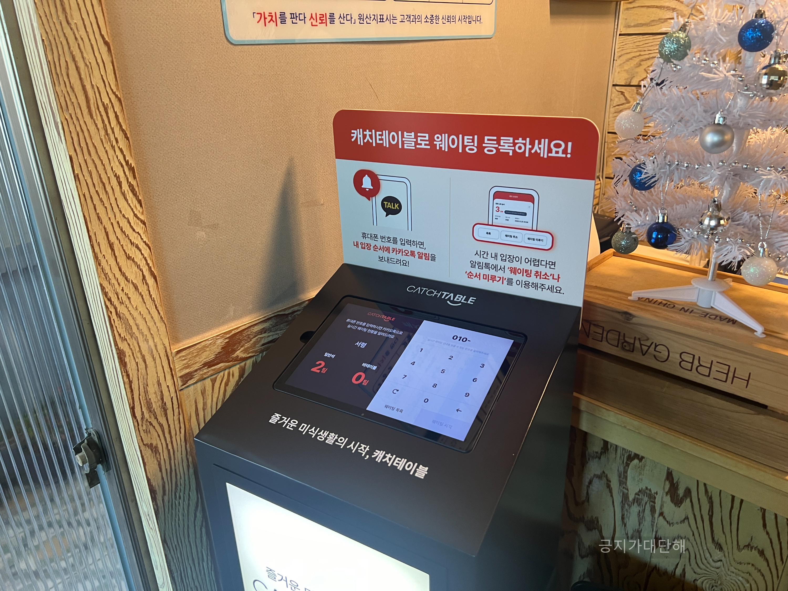강화도 서령 웨이팅 꿀팁은요? 바로 캐치테이블이 가능하다는 것입니다. 출발 전에 캐치테이블 어플로 웨이팅 현황을 확인한 후 원격 줄 서기를 하면 많이 기다리지 않고 식사를 하실 수 있습니다.