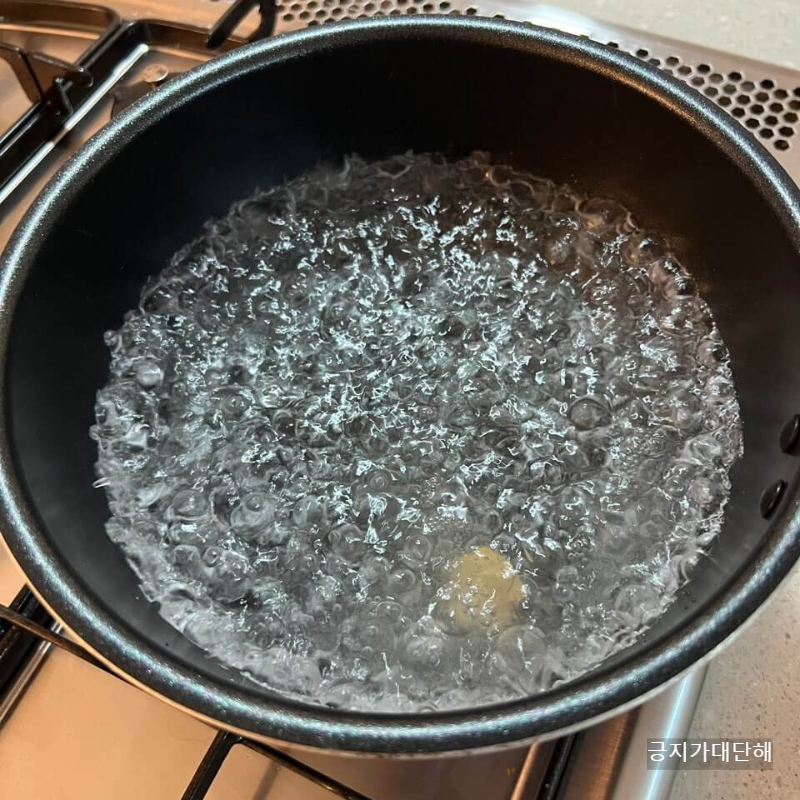 전찌개를 끓이기 위한 육수를 만들어 줄게요. 물 500ml에 집에 있던 코인육수를 넣어주었습니다. 없으면 다시마를 넣어 육수를 우려주면 되고 다시마도 없다면 맹물에 그냥 끓이셔도 무방합니다.