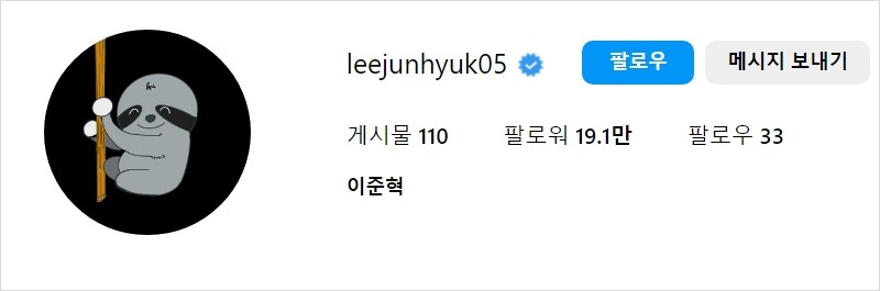 나무늘보 같은 삶을 꿈꾼다는 엉뚱한 면이 있기도 한 이준혁 배우. 그에 걸맞게 본인의 인스타그램 프로필 사진도 나무늘보임을 알 수 있습니다. 엠비티아이는 INFP라고 하니 대충 어떤 성격인지 알 것 같기도 해요. 작품에서 엉뚱하기도 하고 선한모습을 주로 보여주던 이준혁이 범죄도시3에서 어떻게 등장 할지 기대가 됩니다.