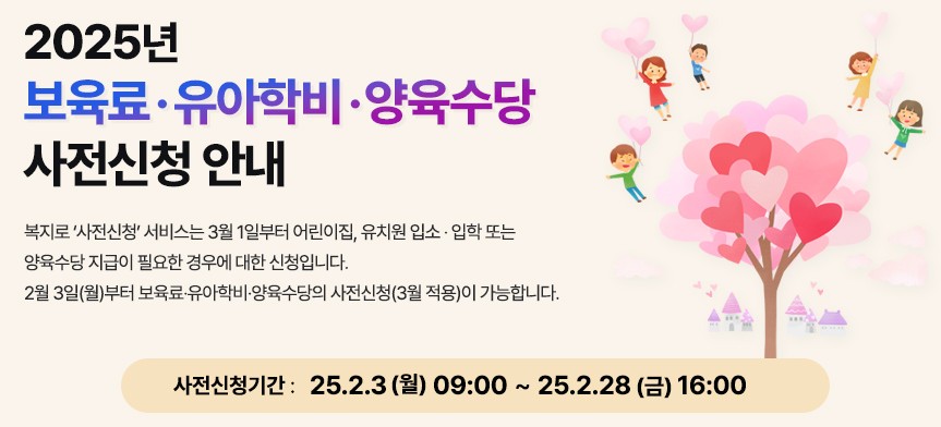 복지로 보육료, 유아학비, 양육수당 사전신청 기간은 2/3부터 2/28까지로 기간 내 신청하셔야 3월 적용이 가능합니다. 어린이집 입소를 앞두고 있다면 복지로 보육료 신청을 서두르셔야겠습니다.