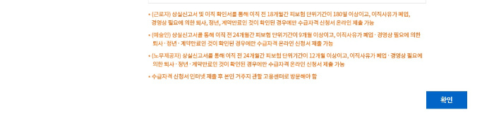 구직급여란 재취업 활동을 하는 동안 생활을 유지하기 위해 급여를 주는 개념으로서 재취업을 위한 활동을 열심히 해야 합니다. 재취업을 위한 약속 이란 항목으로 내용을 꼼꼼히 읽어 본 후 하단부로 내려가 확인을 눌러 다음 단계로 진입합니다.