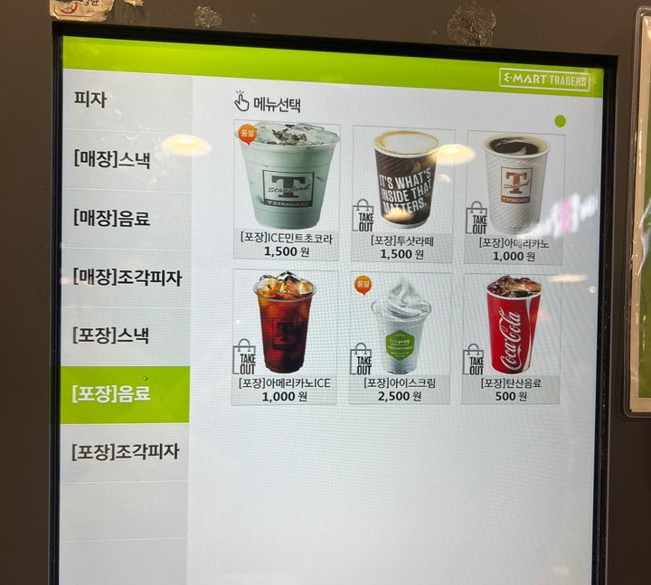 다음은 매장에서 즐길수 있는 음료 메뉴입니다. 탄산음료가 500원이고 아이스 아메리카노가 1,000원으로 즐길 수 있습니다. 이케아에서 소프트콘이 500원인 것에 비해 아이스크림의 가격이 비싼 듯 하지만 양이 더 많기 때문에 가성비는 충분하다고 느껴지네요.