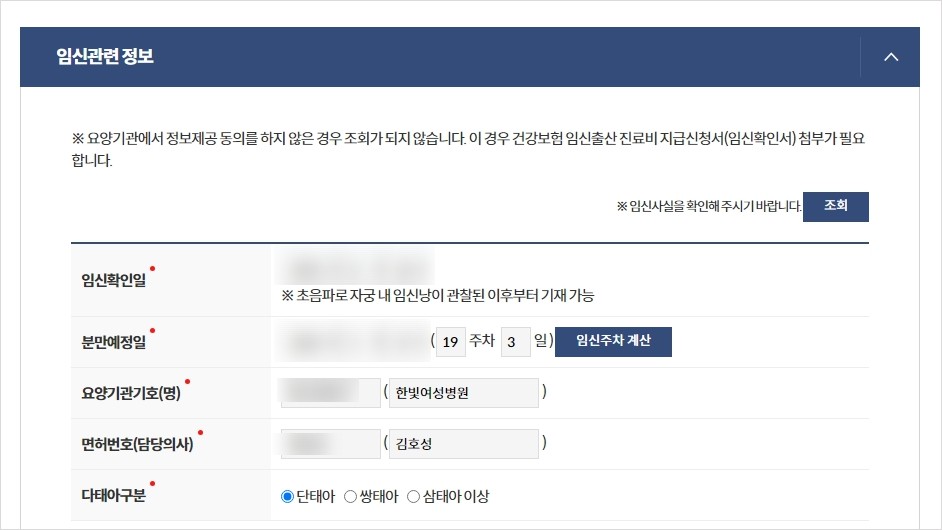 본인인증을 한 뒤 다음으로 넘어가 개인 정보를 확인해 줍니다. 이때 예전에 발급 받았던 임신확인서를 보고 임신확인일, 분만예정일 등의 정보를 확인하여 입력하여줍니다. 철분제는 임신 16주부터 가능하오니 임신 16주가 되신 분들만 철분제 신청을 할 수 있을 듯 합니다.