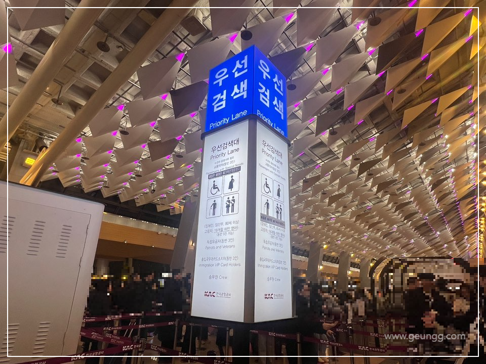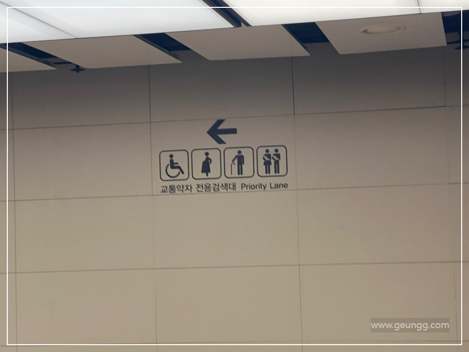 이렇게 우선검색이 보이는 곳으로 가서 항공사 카운터에서 받은 스티커를 보여드리고 남들보다 빠르고 편하게 우선검색대를 지나쳤습니다.