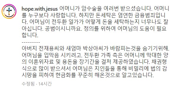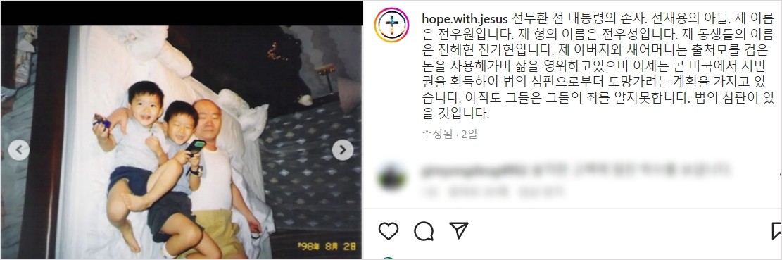 전우원 인스타그램 바로가기 https://www.instagram.com/hope.with.jesus/