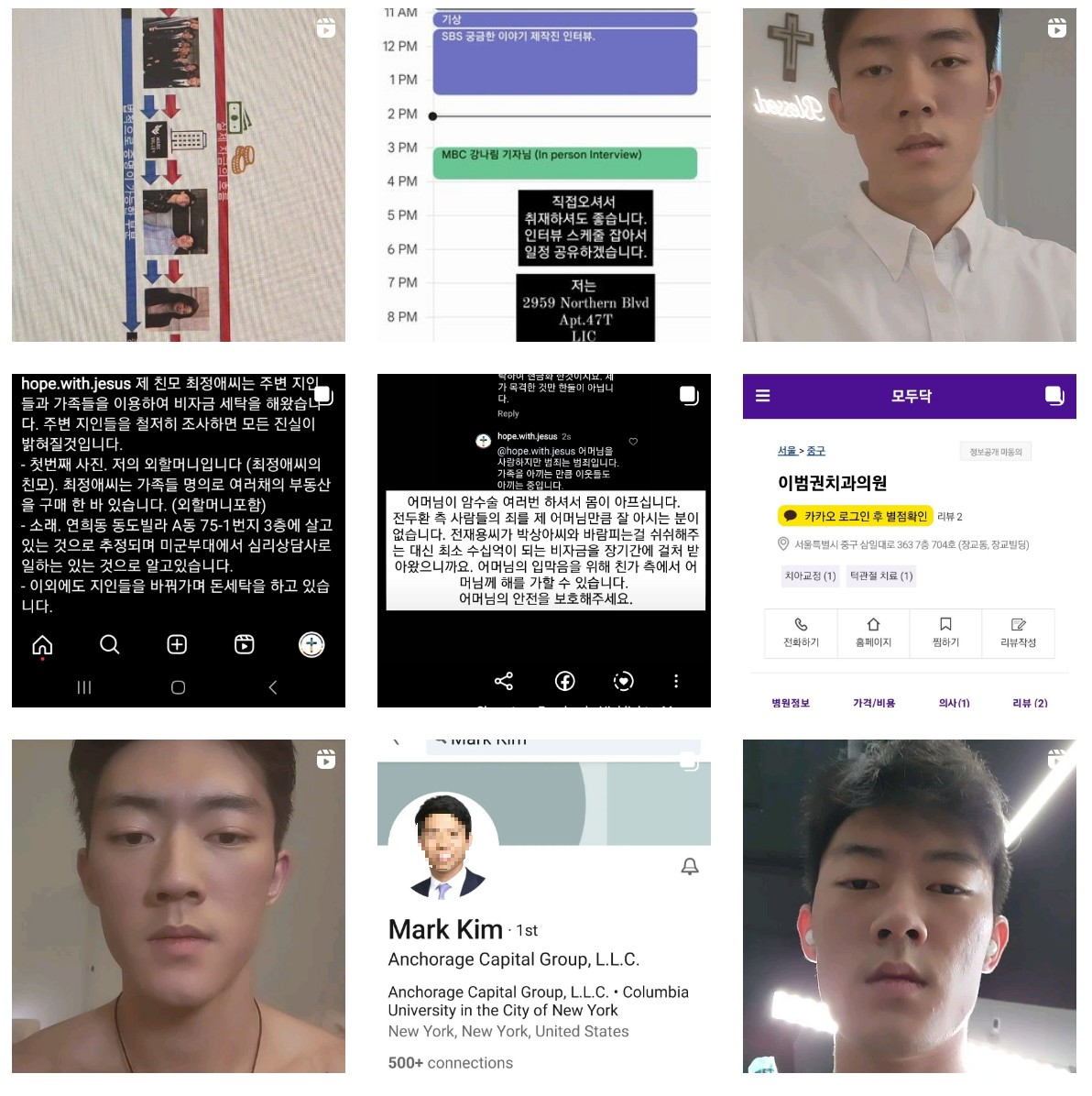 전씨는 각종 영상을 올리며, 본인은 뉴욕의 한영회계법인의 컨략컨설팅 부서에서 일하고 있다고 밝히며, 가족들이 행하고 있을 범죄 사기 행각에 대해 밝히는데 도움이 되고자 영상을 찍게 되었다고 말 했습니다. 겉으로는 선한척을 하고 뒤에서 악마의 짓을 하지 못하도록 여러분이 꼭 도와달라며 호소하기도 했습니다.