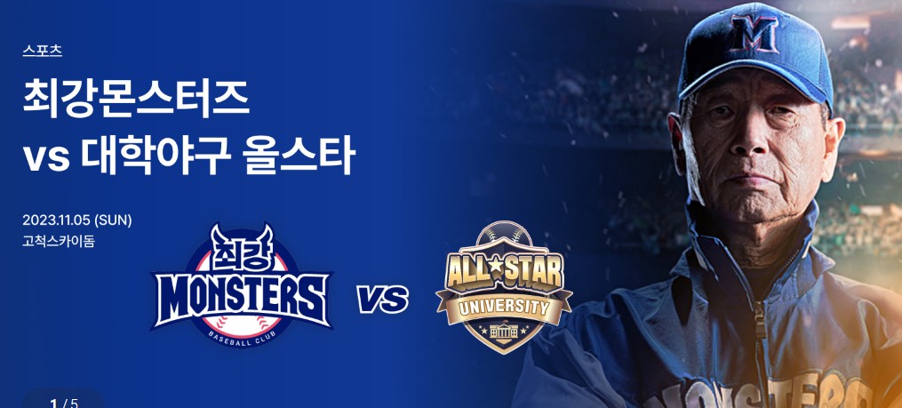 이번 경기는 최강 몬스터즈와 대학야구 올스타와의 맞대결 입니다. 경기 날짜는 11월 5일 일요일로 경기 장소는 고척스카이돔에서 이루어집니다.