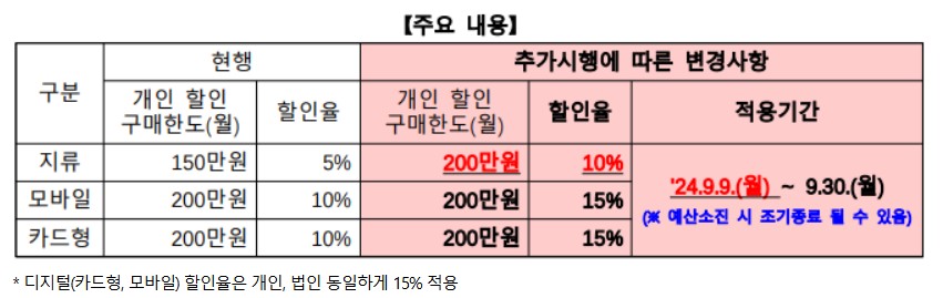 온누리 상품권 추가 특별 할인은 예산 소진시 종료 될 예정입니다. 온누리상품권 15% 할인 혜택을 받으시려면 빠르게 구입 하셔야 합니다.