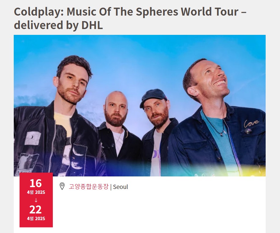 콜드플레이는 크리스 마틴, 조니 버클랜드, 가이 베리맨, 윌 챔피언으로 구성 된 밴드입니다. 지난 2017년 월드 투어로 처음 한국을 찾았었고 잠실 주경기장에서 양일간 전석 매진이라는 기록을 세우기도 했습니다. 2025년 찾는 콜드플레이는 무려 4회의 공연을 기획하고 있습니다. 조금 더 많은 한국 팬들을 만나기 위함이 아닐까 싶습니다.