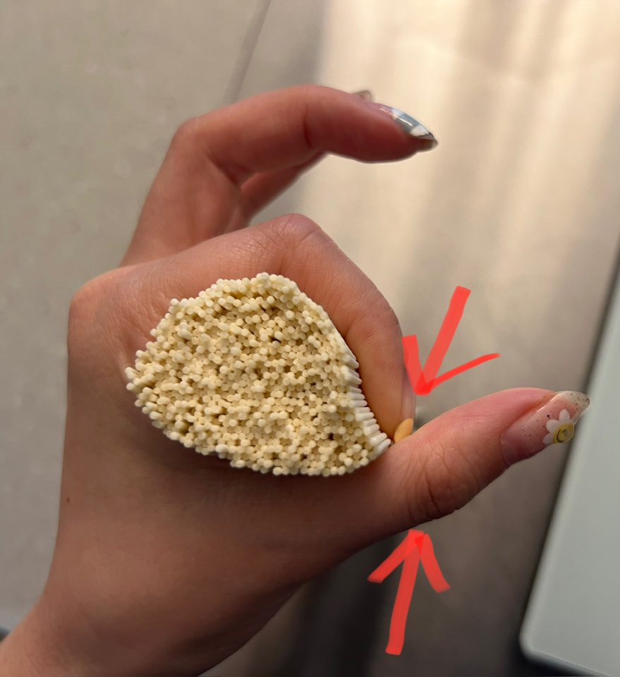 위와같이 소면을 가득 잡고 검지가 엄지손가락 마디에 딱 걸치는 정도가 2인분입니다. 파스타의 경우 100원짜리 500원짜리 동전이라고 표현을 하지만 소면은 동그라미 크기로 체크해 보세요. 500원짜리 동전보다 큰 사이즈입니다.