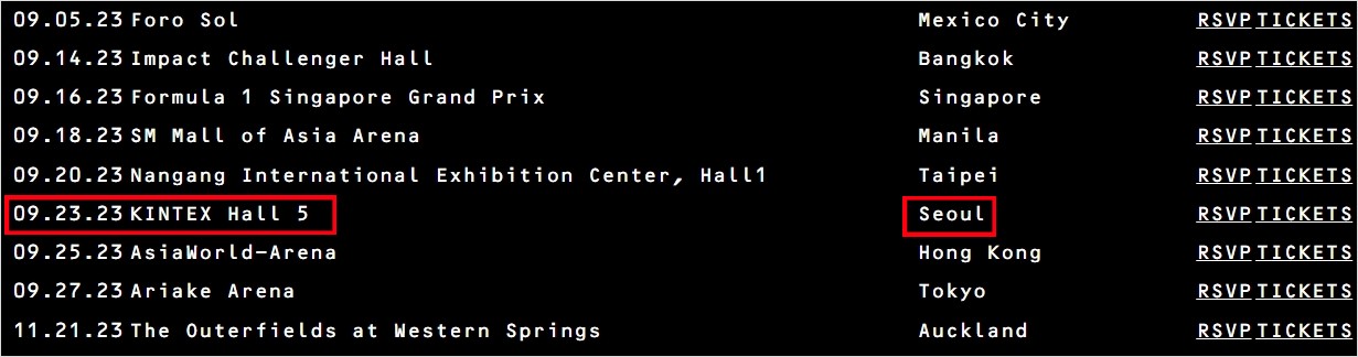 샘스미스, 브루노마스, 라우브 등 내한 공연 일정이 계속 되는 와중에 포스트말론의 내한 공연까지 확정되어서 너무 기쁩니다! 포스트말론 공식 인스타그램에 포스터가 떴는데 방콕, 싱가폴, 마닐라, 타이페이 그리고 다음 순서로 서울에서 공연을 하더라고요. 다음 일정으로 홍콩과 도쿄도 예정되어 있습니다. 공연 날짜는 9월 23일 토요일로 직장인들이 부담 없이 갈 수 있는 요일 토요일이라서 너무 잘 된 것 같습니다. 공연장은 킨텍스 5홀인데 전문 콘서트장이 아니라 완전 평지 그 자체라고 하더라고요. 그렇지만 포스트말론과 같은 공간에 있다는 것만으로도 감격스럽지 않을까 싶습니다.