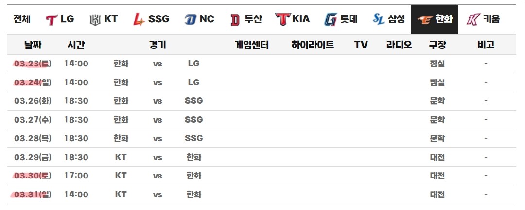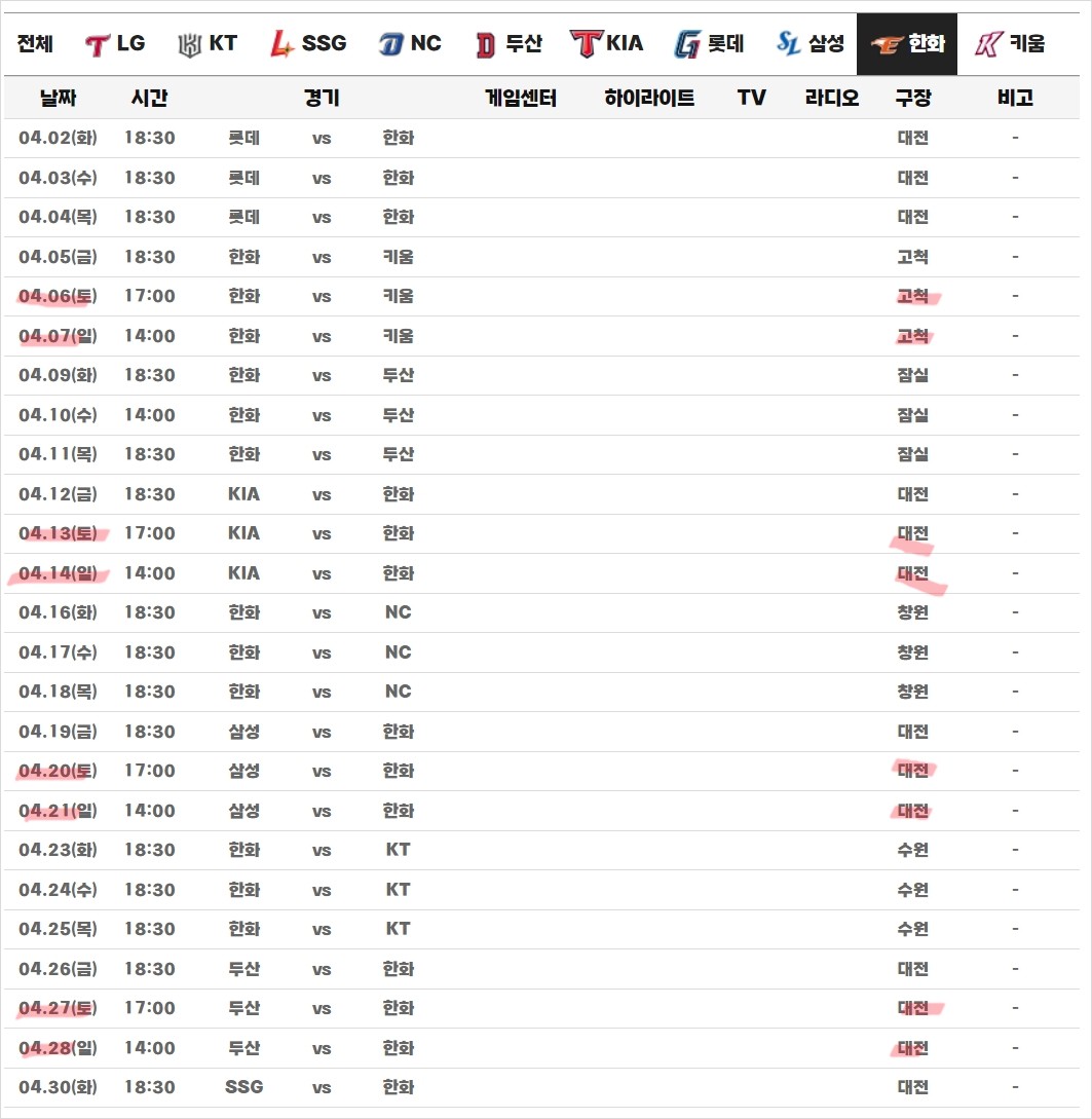2024 한화이글스 3월 4월 경기일정 알아보기